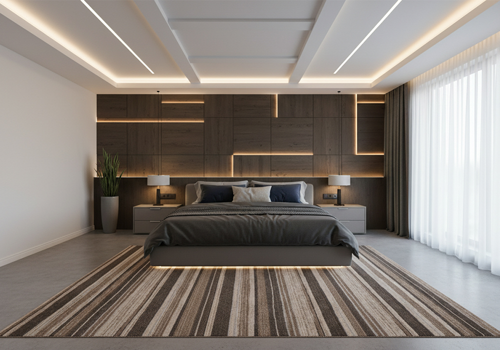- Tạo sự hài hòa và chiều sâu cho không gian: Thảm phòng ngủ EK19 không chỉ là vật trang trí mà còn giúp cân bằng các yếu tố trong phòng, tạo chiều sâu và điểm nhấn thị giác cuốn hút, đặc biệt là trong không gian phòng ngủ cần sự bình yên và ấm áp.