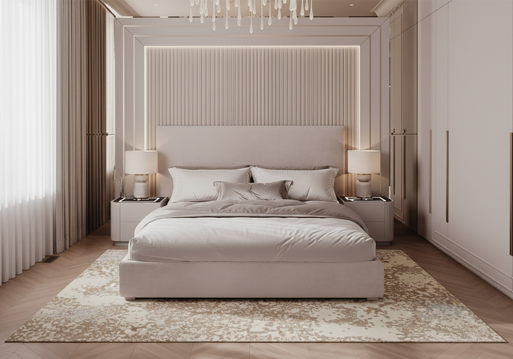 Thảm phòng ngủ HY120 là lựa chọn lý tưởng để hoàn thiện không gian phòng ngủ với cảm giác ấm áp và thư giãn. Thiết kế họa tiết loang nhẹ nhàng trên nền nâu be thanh lịch mang lại chiều sâu và sự mềm mại cho căn phòng, đồng thời tạo nên một vẻ đẹp tinh tế không quá phô trương. Các sắc độ be và nâu được phối trộn khéo léo, gợi cảm giác yên tĩnh – rất phù hợp cho không gian nghỉ ngơi cần sự an nhiên và cân bằng.