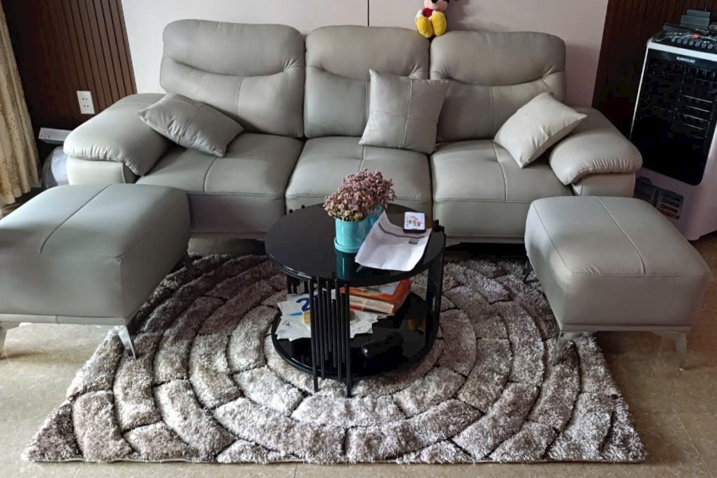 Thảm sợi lông dài tông màu ghi nâu ấm áp, tạo chiều sâu cho không gian nội thất.