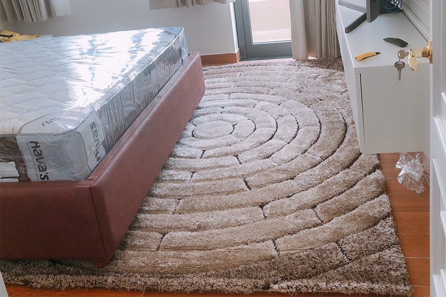 Thảm có chất liệu dày, bề mặt mịn và mềm, mang lại cảm giác êm ái khi bước chân và góp phần tôn lên vẻ hiện đại, tinh tế cho không gian nội thất.