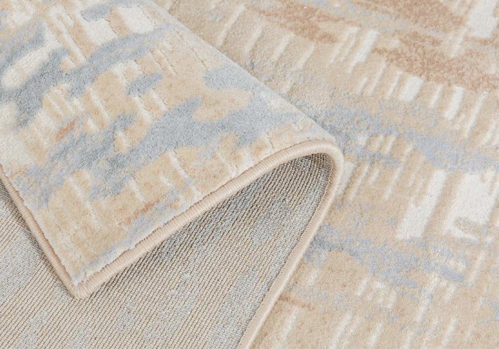 Mang đến vẻ đẹp nhẹ nhàng và tinh tế cho không gian sống của bạn với tấm thảm trải sàn tông màu kem và nâu ấm áp này. Họa tiết trừu tượng, gợi liên tưởng đến những đường vân đá mềm mại hoặc những nét vẽ ngẫu hứng, tạo nên một bề mặt đầy chiều sâu và sự cuốn hút.