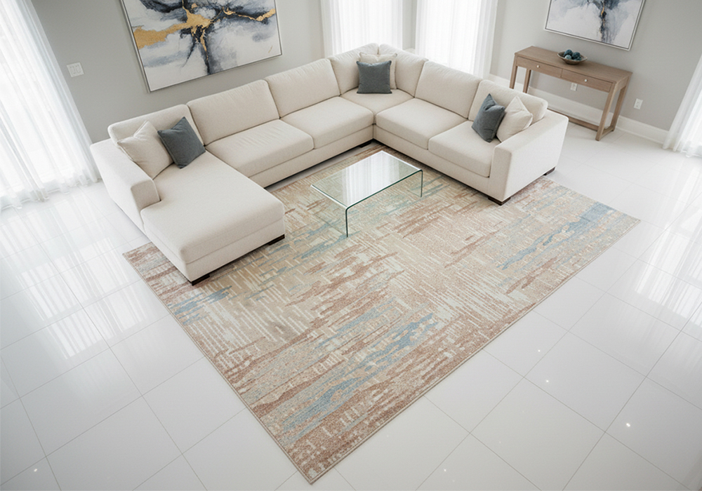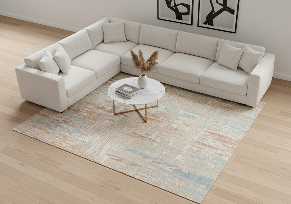 Tạo không gian thư thái và sang trọng với Thảm trải sàn họa tiết vân đá/trừu tượng tông kem nâu