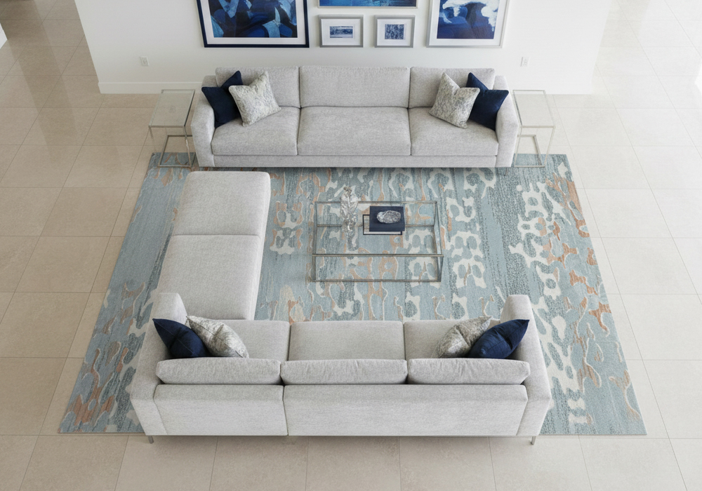 Điểm nhấn không gian sống hiện đại với Thảm trải sàn họa tiết trừu tượng tinh tế