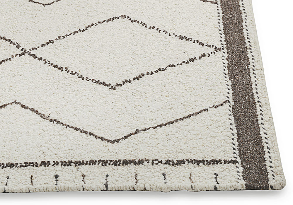 Được dệt thủ công tại Ấn Độ, tấm thảm này thể hiện sự khéo léo và tinh xảo của các nghệ nhân. Hoạ tiết hình thoi đan xen với các đường viền hình zigzag tạo nên sự cân đối, nhấn mạnh tính nghệ thuật trong thiết kế.