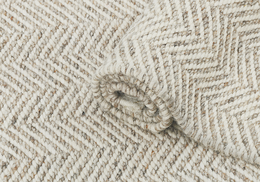 Họa tiết ziczac nhỏ gọn, đều đặn trên bề mặt tạo nên sự hài hòa và nhẹ nhàng cho tấm thảm. Màu sắc chính là màu kem pha trộn với những tông xám nhạt, mang đến cảm giác thanh thoát, giúp không gian trở nên thoáng đãng và ấm cúng.