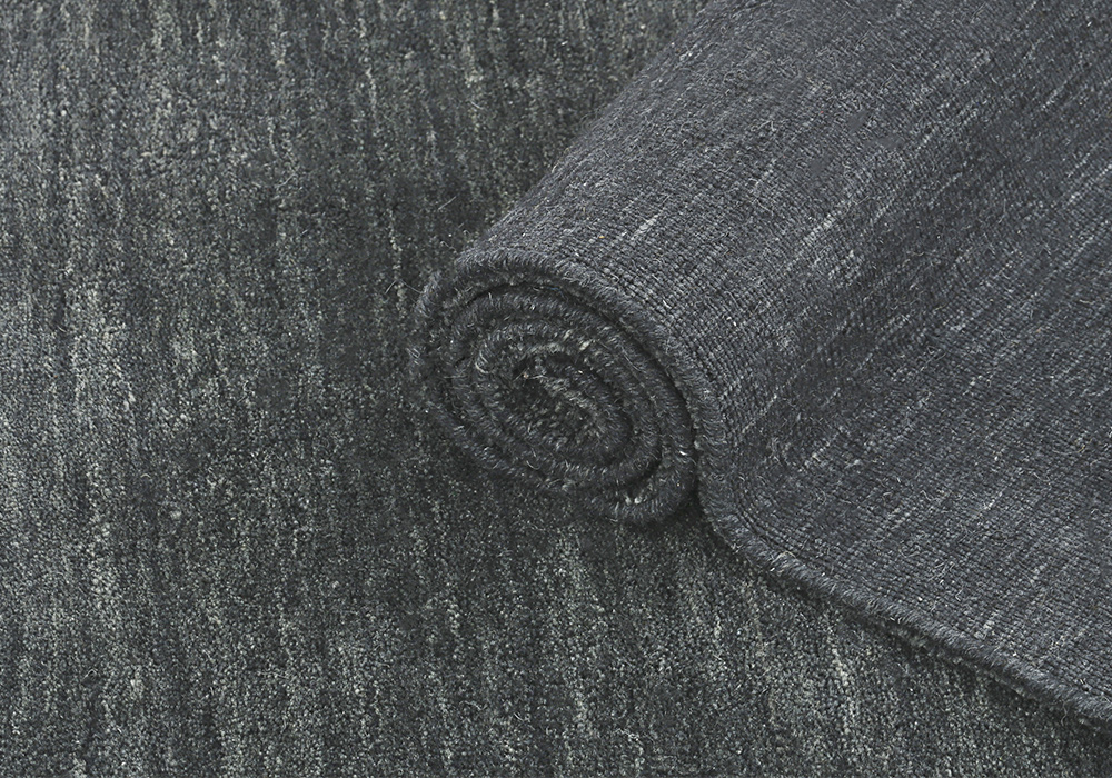 Tấm thảm sợi ngắn dệt thủ công từ Ấn Độ này toát lên vẻ đẹp hiện đại và sang trọng với sắc xám đậm và đen carbon tinh tế.