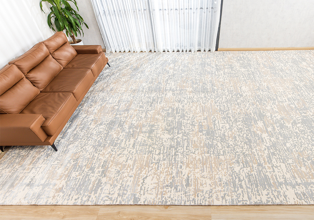 - Hoa văn hiện đại thảm HY101 sở hữu họa tiết trừu tượng lấy cảm hứng từ những gợn sóng nước nhẹ nhàng, tạo hiệu ứng mềm mại và thư thái cho không gian. Sự kết hợp giữa các gam màu be, nâu và xanh nhạt mang đến cảm giác hài hòa, phù hợp với nhiều phong cách nội thất từ hiện đại đến tối giản.