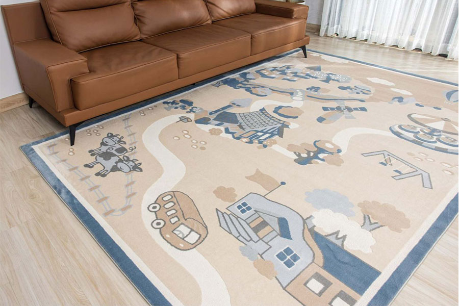 Thảm HY220 KID mang phong cách dễ thương với thiết kế mô phỏng một vùng quê yên bình, điểm xuyết bởi ngôi nhà cổ tích, cối xay gió, khu vui chơi và những chú bò ngộ nghĩnh. Sản phẩm mang lại không gian vui tươi, gần gũi, giúp bé thỏa sức sáng tạo và vui chơi an toàn.