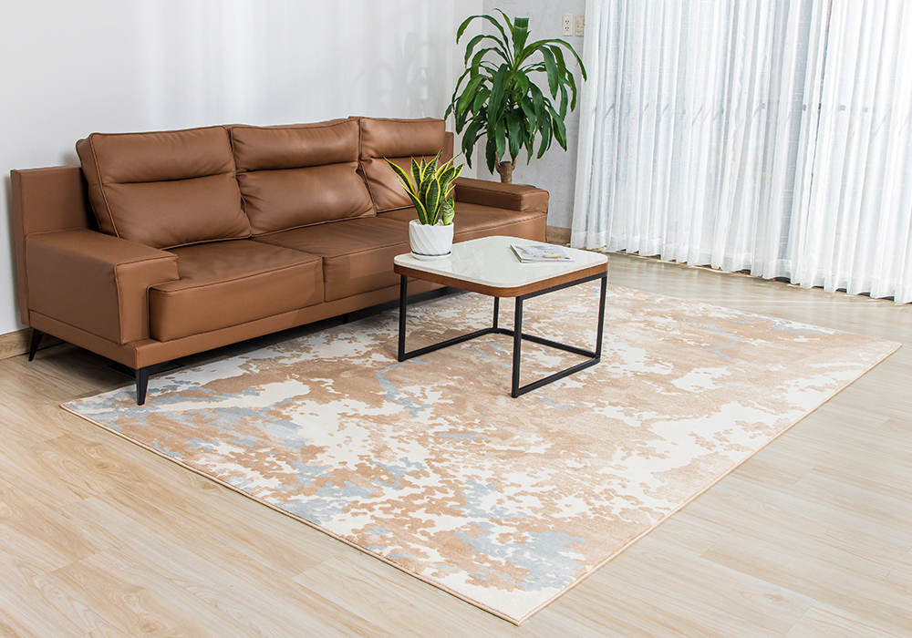 Thảm HY410 mang phong cách hiện đại với gam nâu sáng kết hợp họa tiết loang độc đáo, tạo hiệu ứng thị giác ấn tượng và đầy cuốn hút. Sự phối màu tinh tế giữa nâu, be và xám nhạt giúp thảm dễ dàng ứng dụng trong nhiều không gian khác nhau, từ phong cách sang trọng đến tối giản.