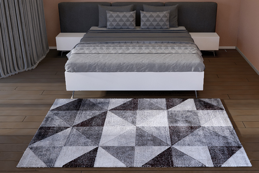 Mang đến sự khác biệt và phong cách cho không gian phòng ngủ của bạn với tấm thảm PR1004. Họa tiết hình học được tạo nên từ sự kết hợp của các khối tam giác và đa giác, sử dụng các sắc thái màu xám và trắng kem, tạo nên một bố cục thị giác độc đáo và hiện đại. Thiết kế này không chỉ làm đẹp sàn nhà mà còn phản ánh gu thẩm mỹ tinh tế của bạn.