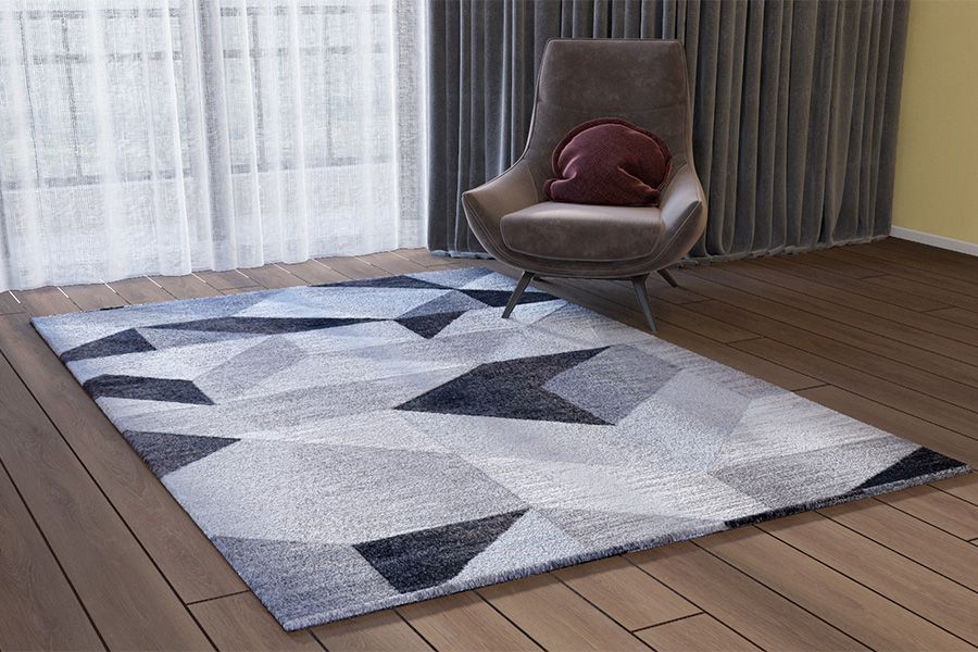 Khám phá vẻ đẹp của sự kết hợp hình học đầy mê hoặc với tấm thảm trang trí PR1011. Họa tiết các khối đa giác được sắp xếp ngẫu hứng, sử dụng sự pha trộn tinh tế giữa các sắc thái xám và đen, tạo nên một bố cục thị giác phức tạp nhưng hài hòa. Thiết kế này mang đến nét hiện đại, chiều sâu và sự bí ẩn cho không gian của bạn.