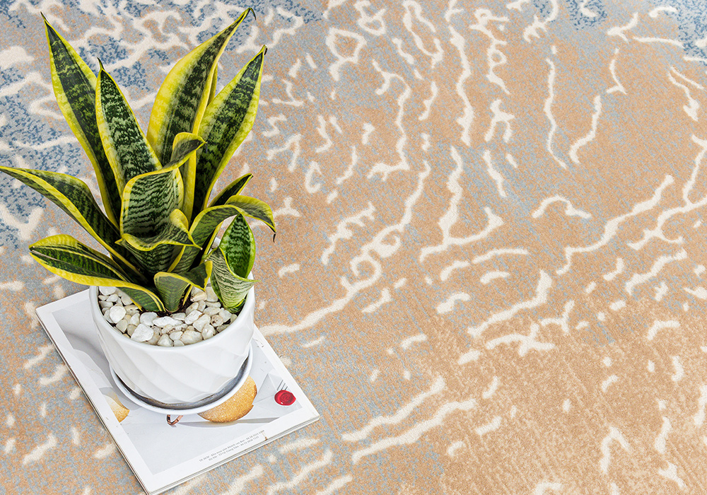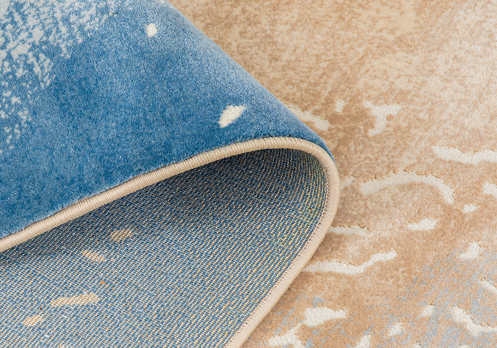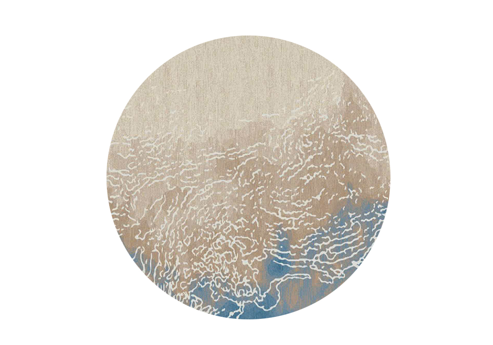 Thảm tròn HY310 là mẫu thảm sợi ngắn nhập khẩu mang thiết kế trừu tượng đầy nghệ thuật, lấy cảm hứng từ những con sóng mềm mại lan tỏa trên bờ cát. Họa tiết uyển chuyển kết hợp hài hòa giữa các gam màu be, xanh dương và trắng tạo nên hiệu ứng thị giác nhẹ nhàng, gợi cảm giác thư thái như đang hòa mình vào thiên nhiên.