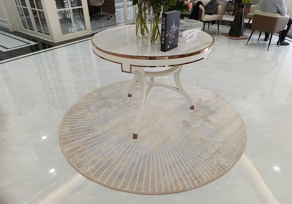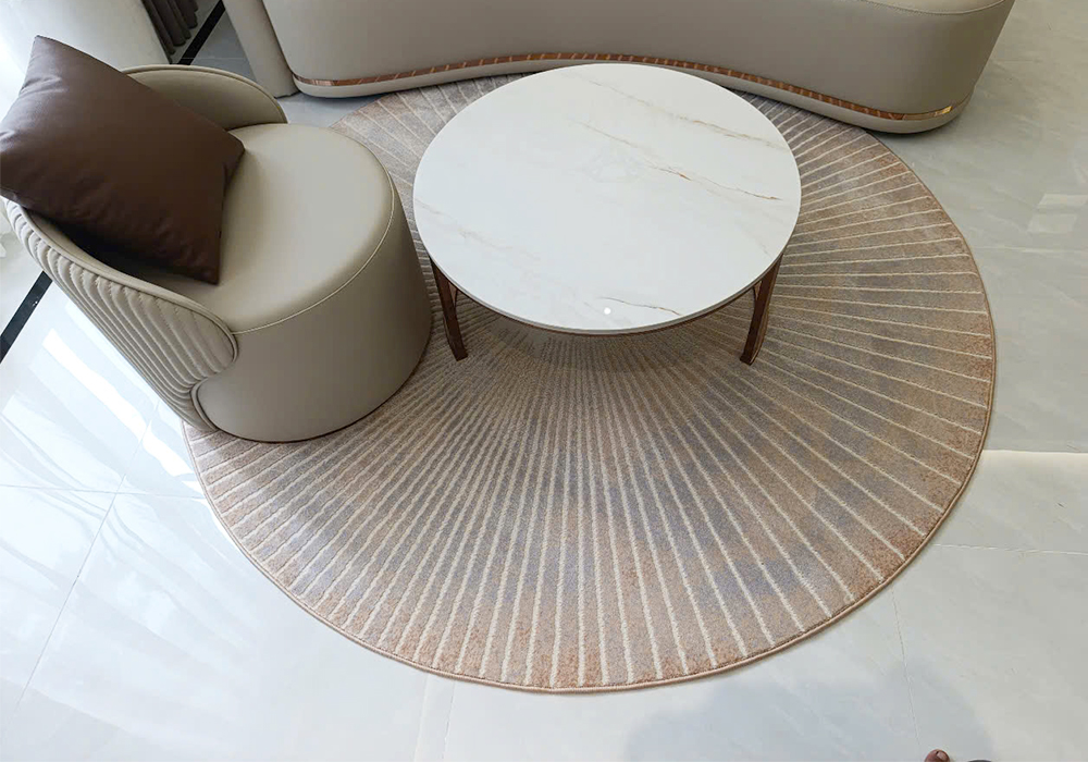 Với thiết kế dáng tròn mềm mại, mẫu thảm này đặc biệt phù hợp cho những không gian cần tạo điểm nhấn trung tâm như phòng khách, phòng ngủ, showroom hay quán café. Dù đặt dưới bàn trà, ghế sofa hay khu vực tiếp khách, thảm trải sàn HY610 vẫn giữ được sự hài hòa, giúp tổng thể không gian trở nên gọn gàng và có chiều sâu hơn. Đây cũng là lựa chọn lý tưởng cho các không gian theo phong cách tối giản hoặc hiện đại, nơi đề cao sự tinh tế và cảm xúc nhẹ nhàng.
