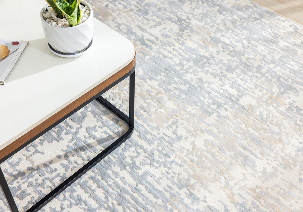 Thảm trải sàn nổi bật với họa tiết loang trừu tượng, phối hợp hài hòa giữa các gam màu trắng sữa, be sáng, xám nhạt và điểm nhấn xanh dương dịu nhẹ tựa sắc nước biển. Bảng màu trung tính pha xanh mang đến cảm giác thư giãn, mát dịu, giúp không gian trở nên thoáng đãng và dễ chịu hơn. Nhờ đó, thảm tròn HY701 dễ dàng kết hợp với nhiều phong cách nội thất như hiện đại, tối giản hay Scandinavian.