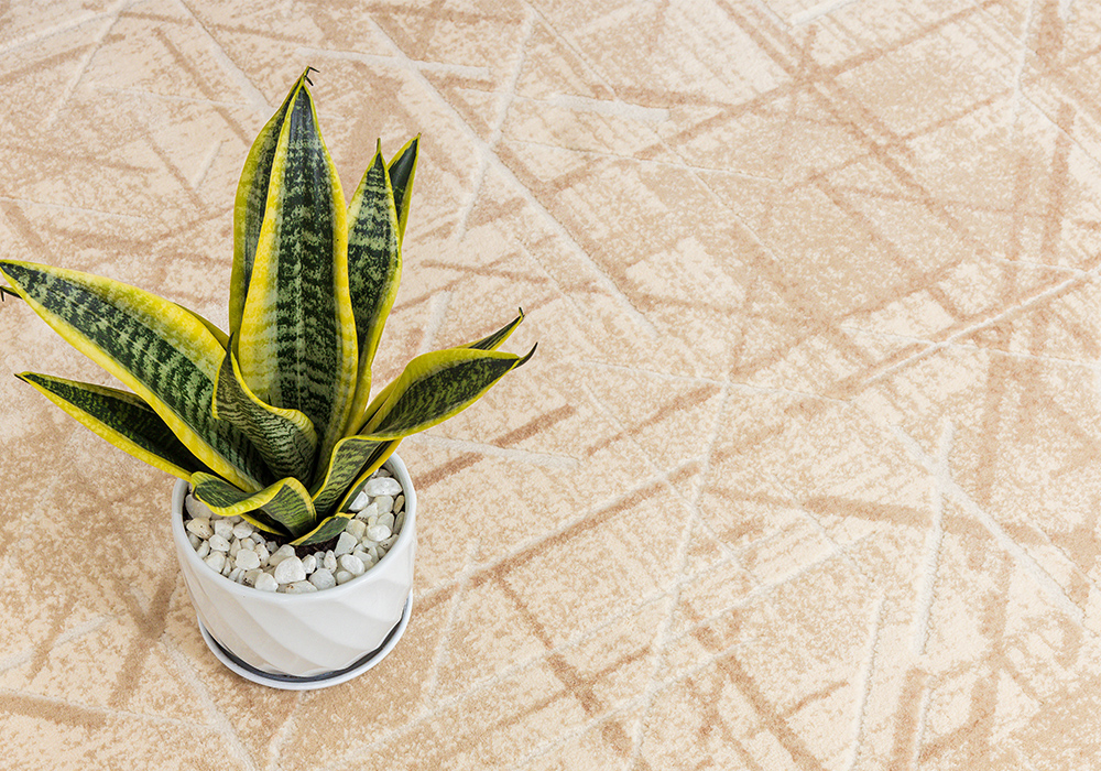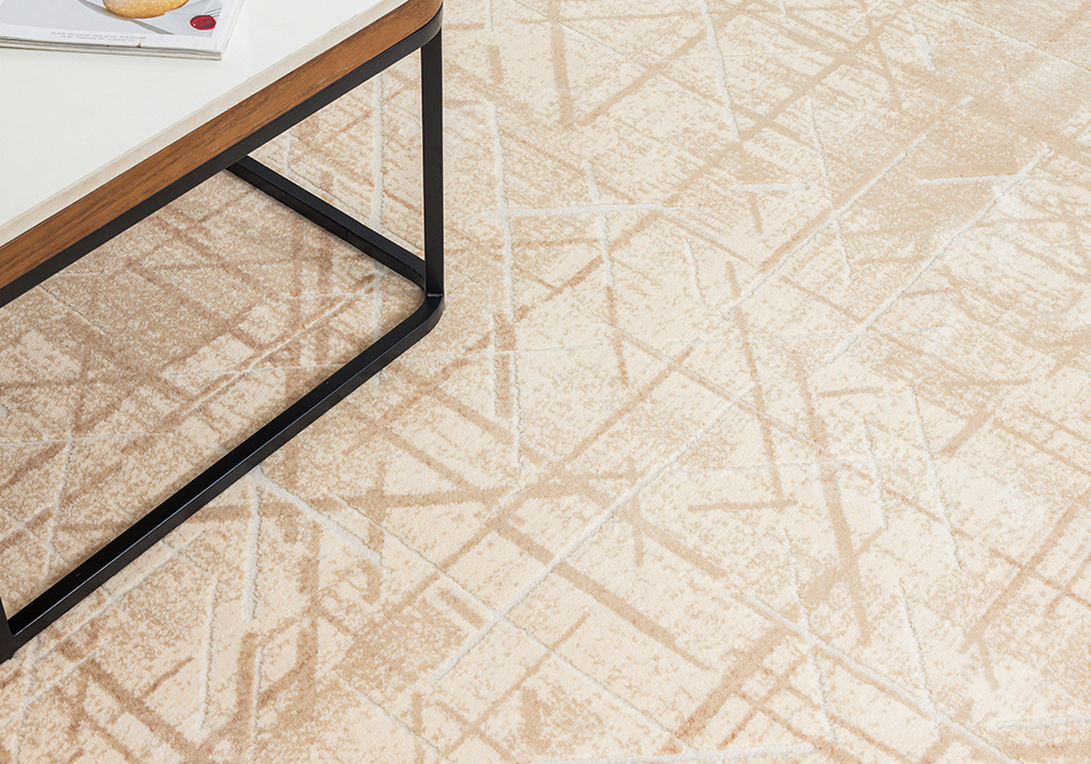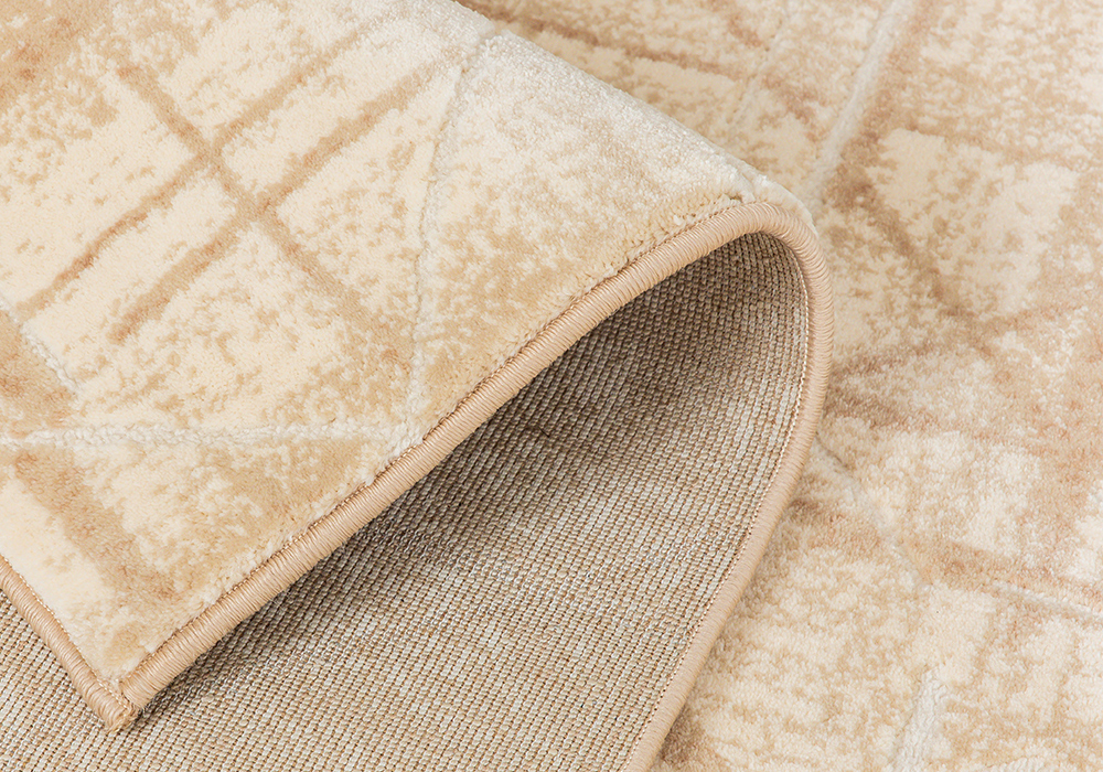 Thảm HY801 gây ấn tượng với gam màu be sáng trung tính, kết hợp hệ họa tiết kẻ đan hình học được xử lý khéo léo và cân đối. Thảm trải sàn với thiết kế mang tính trừu tượng nhẹ, tạo hiệu ứng lớp nền có chiều sâu nhưng không làm không gian trở nên nặng nề. Khi được thiết kế ở dáng thảm tròn, tổng thể càng trở nên mềm mại, giúp cân bằng bố cục và làm dịu những đường nét vuông vức trong phòng