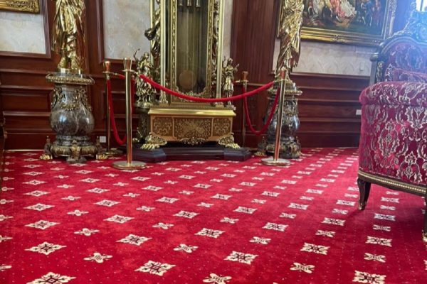 Để làm nổi bật vẻ đẹp của sảnh đón khách, thảm cuộn khổ lớn là lựa chọn rất được ưa chuộng trong nhiều khách sạn cao cấp. Với hoa văn tinh tế, màu sắc trang nhã, loại thảm này không chỉ giúp phủ đều toàn bộ diện tích sảnh mà còn thể hiện sự chỉn chu trong từng chi tiết nội thất. Nhờ đó, không gian trở nên đẳng cấp và sang trọng hơn, tạo thiện cảm và cảm giác chuyên nghiệp ngay từ bước chân đầu tiên của khách vào khách sạn.